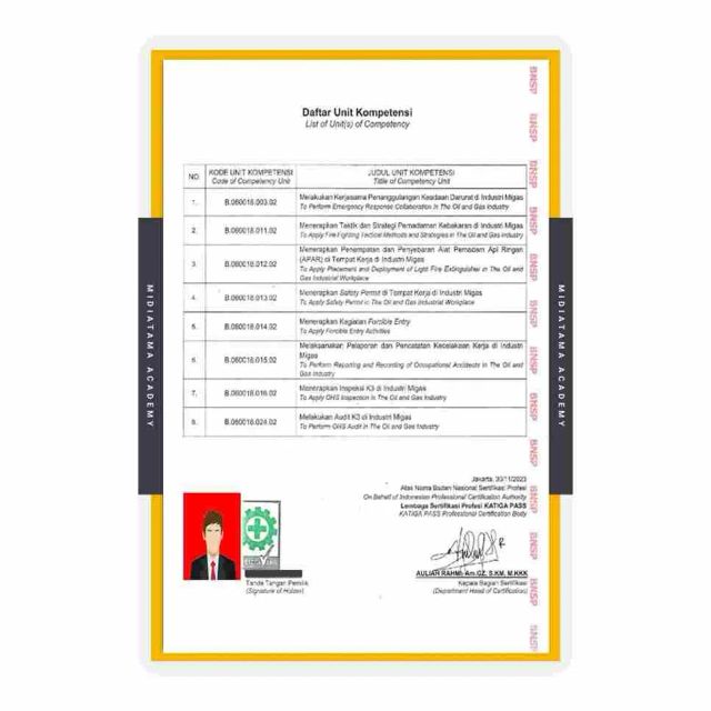 - UK. B.060018.024.02 : Melakukan audit K3 di industri migas